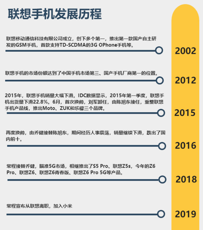 实际上,联想的手机事务比小米华为苹果都早,2002年4月,联想移动通讯科技有限公司建立,首要从事联想品牌手机的研制、出产、出售和服务。到2009年9月,联想手机的商场份额到达了我国手机商场第三、国产手机厂商榜首的方位。
